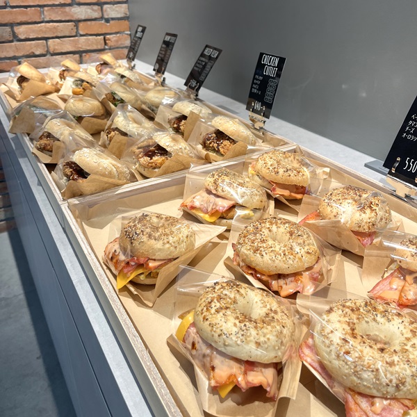 定番ベーグルに加えて、大人気の福岡限定フレーバー「八女茶あんこ」「梅しそ明太」など、全部で15種類以上のベーグル・サンドをご用意しております。